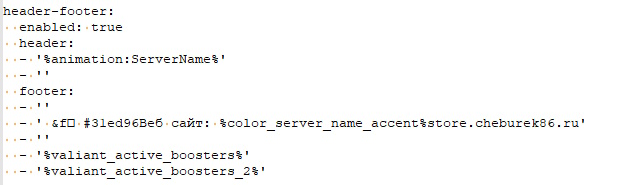 %valiant_battlepass_rewardavailable% Этот заполнитель возвращает true, если у игрока есть доступные, невостребованные награды.%valiant_battlepass_premium% Этот заполнитель возвращает true, если у игрока есть Премиум-пропуск.%valiant_battlepass_page% Этот заполнитель возвращает страницу меню Пропуска на приключения, на которой находится игрок (страницу, содержащую его текущий уровень Пропуска на приключения).%valiant_battlepass_rewardavailable_LEVEL% Этот заполнитель возвращает true, если у игрока есть доступная, невостребованная награда для указанного уровня Пропуска на приключения.%valiant_battlepass_dq_timeuntilreset% Этот заполнитель возвращает время до сброса ежедневного задания.%valiant_battlepass_wq_timeuntilreset% Этот заполнитель возвращает время до сброса еженедельного задания.%valiant_battlepass_dq_timeuntilexpiration% Этот заполнитель возвращает время до истечения ежедневного задания.%valiant_battlepass_wq_timeuntilexpiration% Этот заполнитель возвращает время до истечения еженедельного задания.%valiant_battlepass_dq_number% Этот заполнитель возвращает номер идентификатора ежедневного задания. (используется для отображения в меню CP)%valiant_battlepass_wq_number% Этот заполнитель возвращает номер идентификатора еженедельного задания. (используется для отображения в меню CP)%valiant_battlepass_level_progress_percent% Этот заполнитель возвращает прогресс на пути к следующему уровню Пропуска на приключенияв процентах.%valiant_battlepass_level_progress_graphic% Этот заполнитель отображает прогресс на пути к следующему уровню Пропуска на приключенияв виде цветной шкалы прогресса.%valiant_battlepass_level% Этот заполнитель возвращает уровень пропуска приключений игрока.%valiant_battlepass_xp% Этот заполнитель возвращает количество опыта Пропуска на приключения игрока.%valiant_battlepass_xp_need% Этот плейсхолдер возвращает количество опыта Пропуска на приключения игрока, необходимое для повышения уровня.Администрация